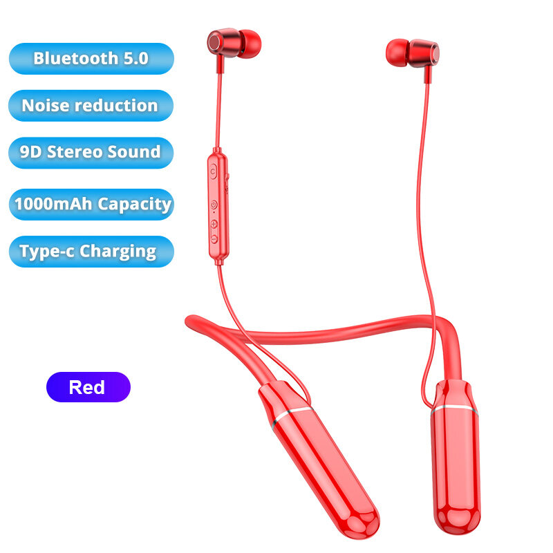 100 Hours Play Music Neck-Mounted Wireless Bluetooth Earphone IPX5 Waterproof Sports Bluetooth Headset Bluetooth earphones 5.0 Wireless Sports Headphones Bass Effect Surround Sound 9D Stereo Sound Hea