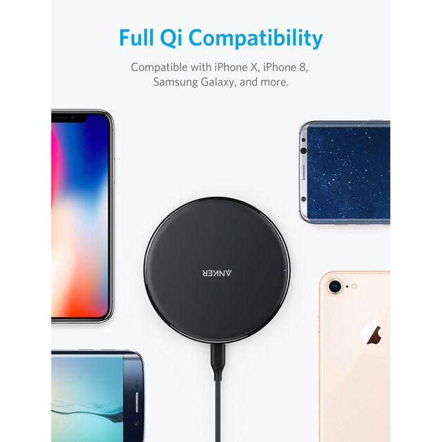 Anker 10W Wireless Charger,Qi-Certified Powerwave Pad Upgraded,7.5W for iPhone,10W Fast-Charging for Galaxy S10/S9/S8/Note10/9 etc