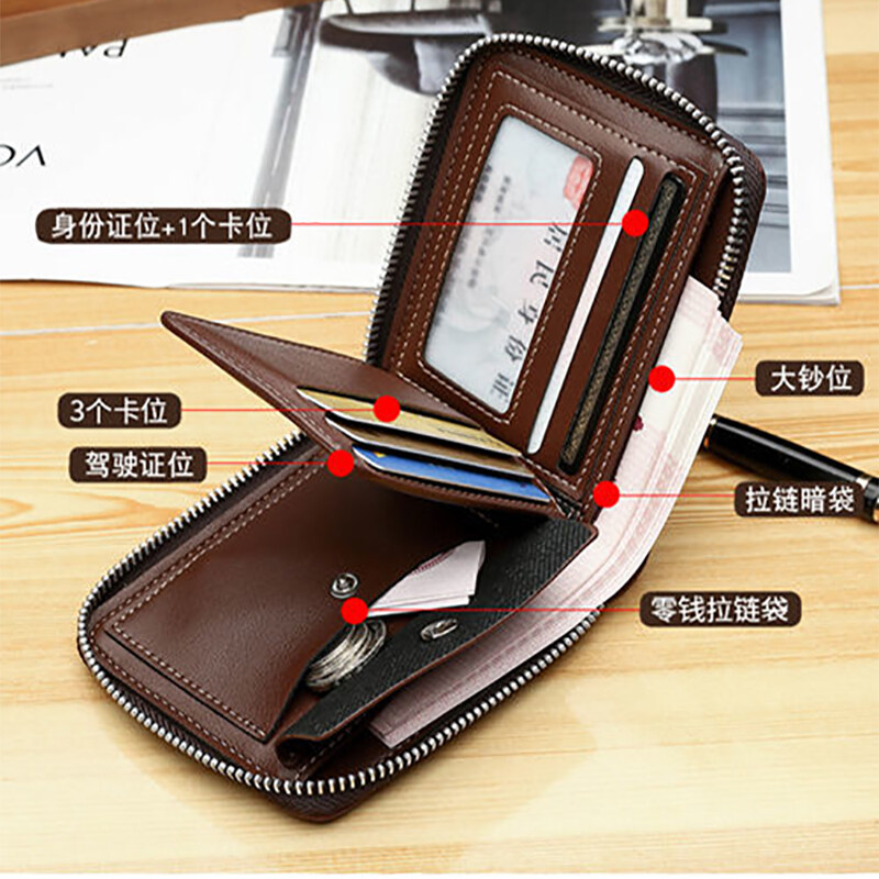 Men's Wallet Short Retro Wallet Multi-function Men and Women Wallet Card Holder Zipper Driver's License Holder Wallet