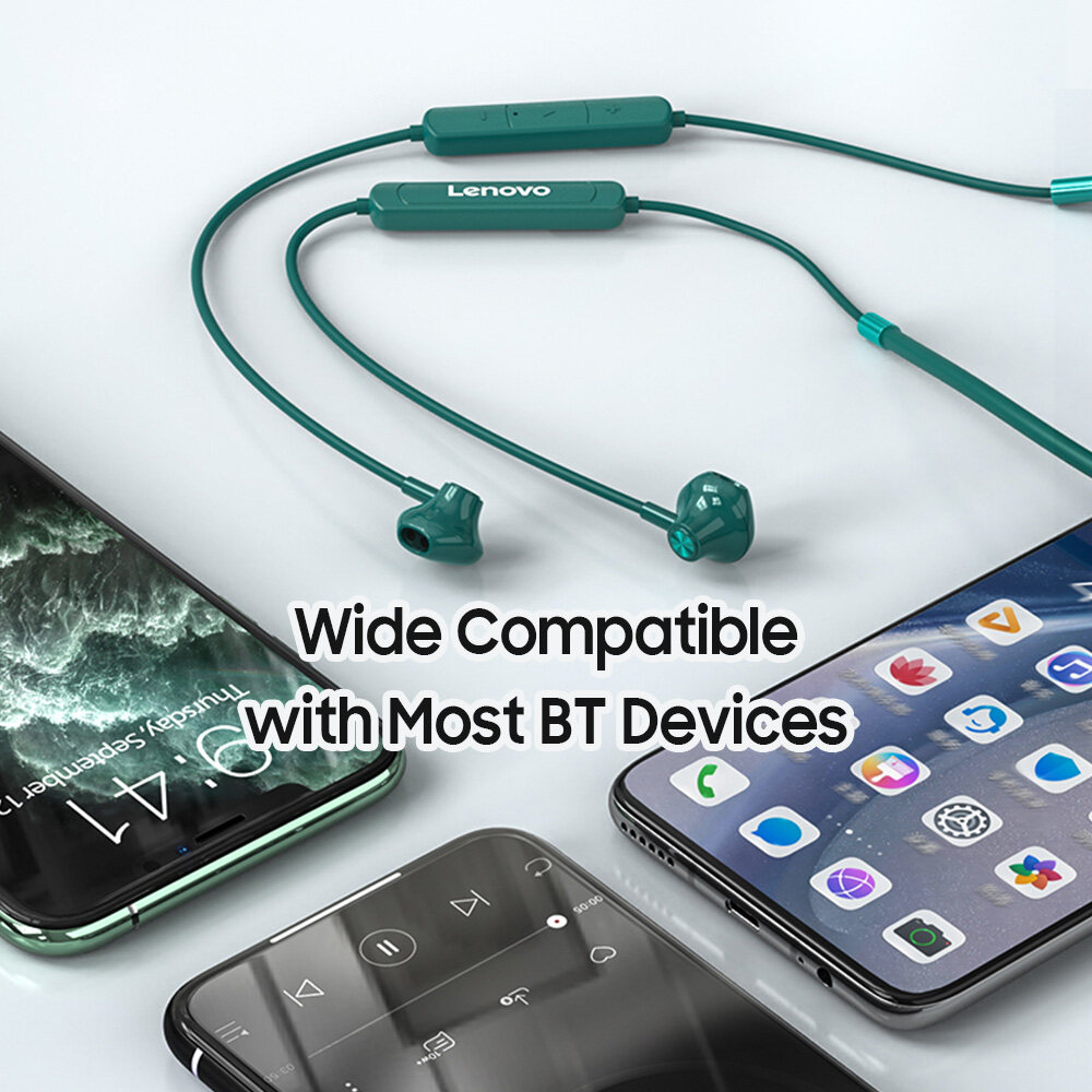 Lenovo SH1 BT5.0 Wireless Earphone Sport Headset with Dual Noise Reduction/Dynamic Driver/IPX5 Waterproof/Ergonomic In-ear Headphone for Sports/Music Compatible with iOS Android