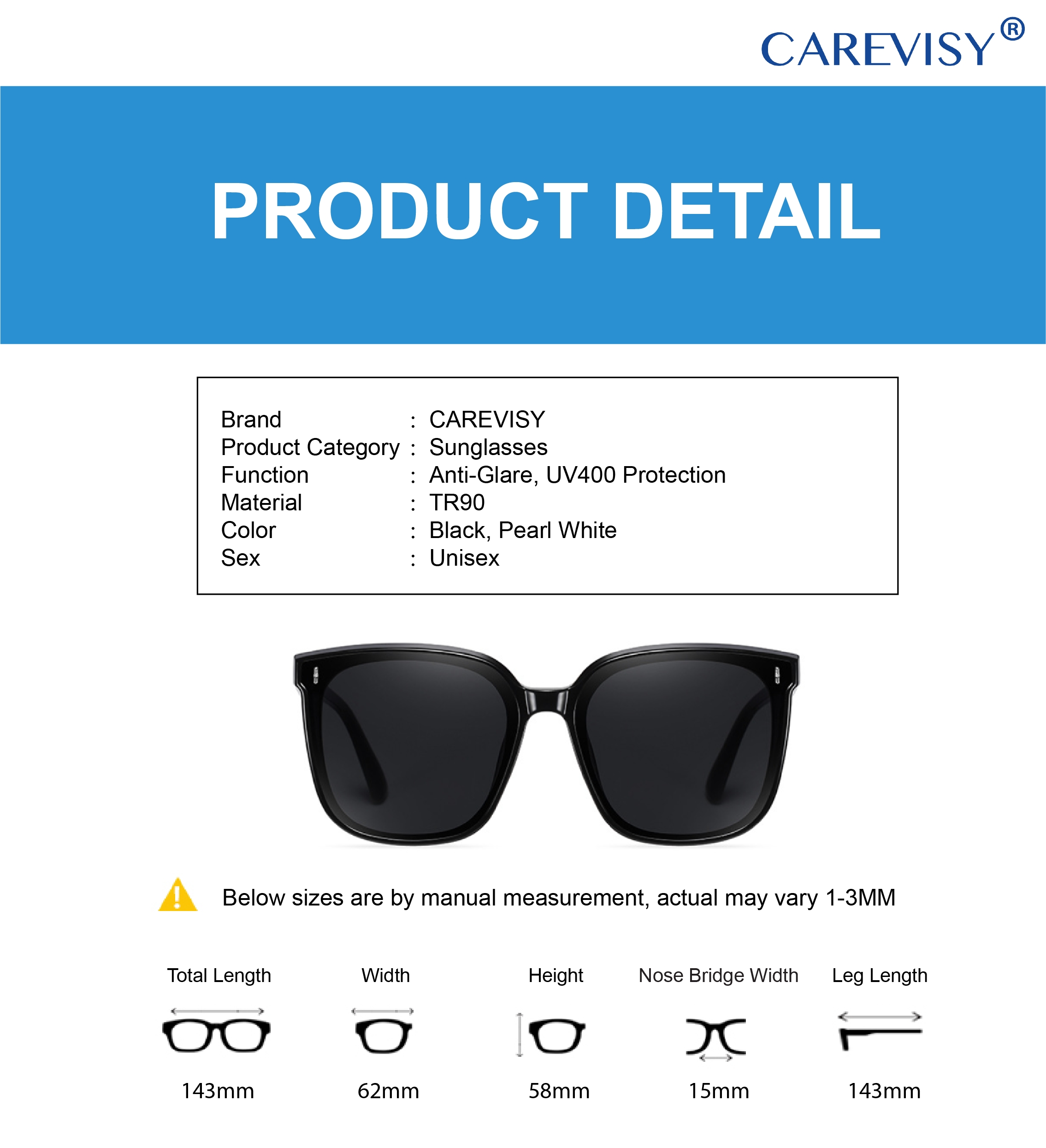 CAREVISY Influencer Sunglasses UV400 Protection Anti Glare Driving Fishing Outdoor Activities Sunglasses for Adults Men Women C6038