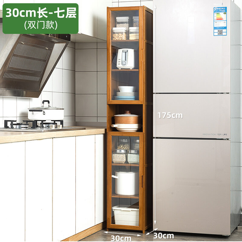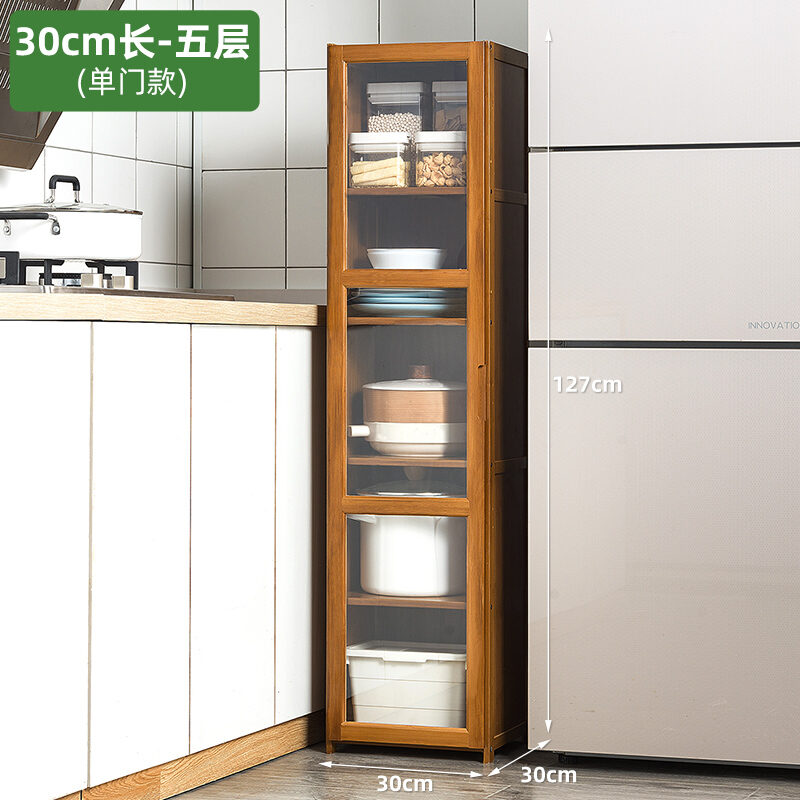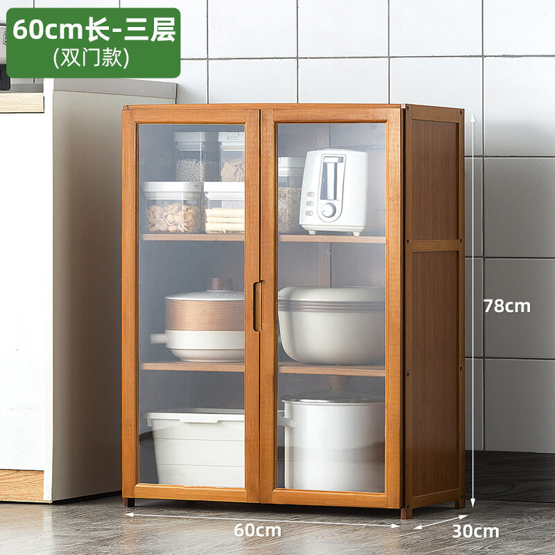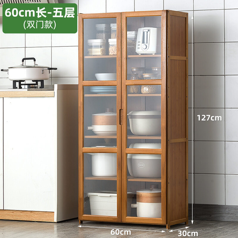 Kitchen Supplies Storage Cabinet Floor Multi-Layer Multi-Functional Storage Rack with Door Kitchenware Tableware Locker Bookshelf Wood