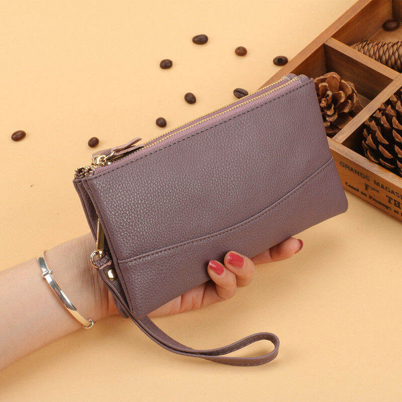 Women's Clutch Women's Wallet Long Double Zipper 2022 New Large Capacity Handbag Coin Purse Soft Leather Mobile Phone Bag
