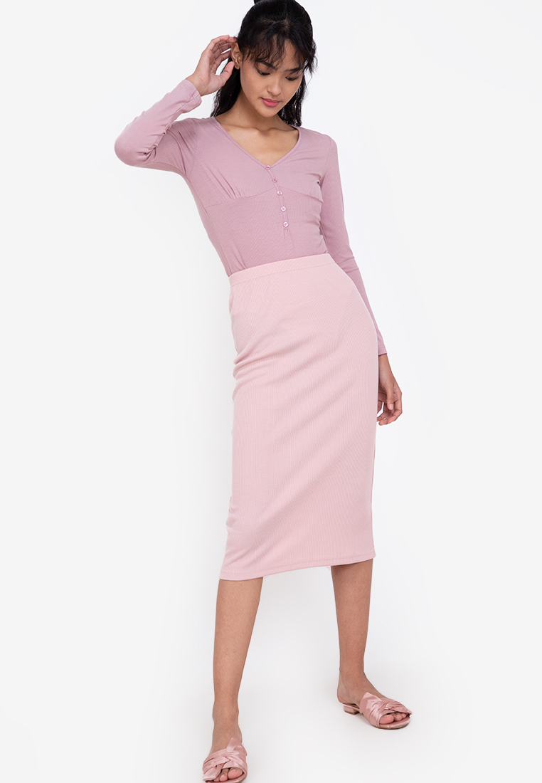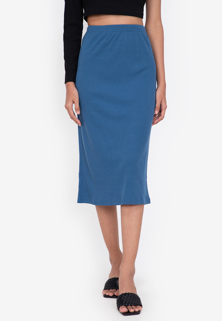 Zalora Basics - Midi Ribbed High Waist Skirt (Skirts)