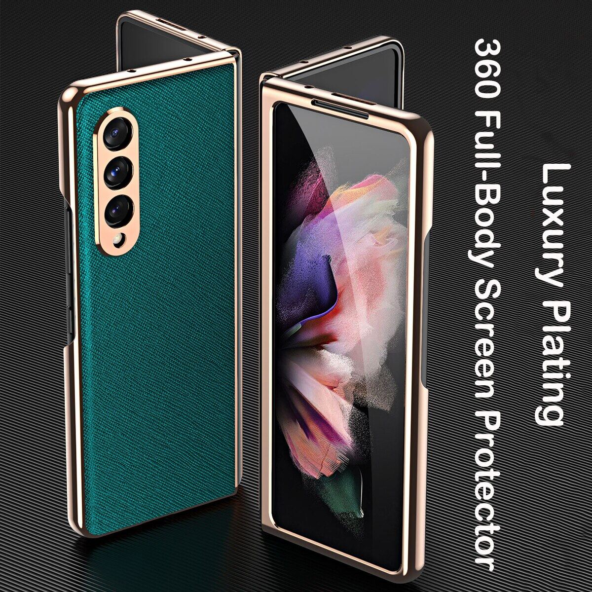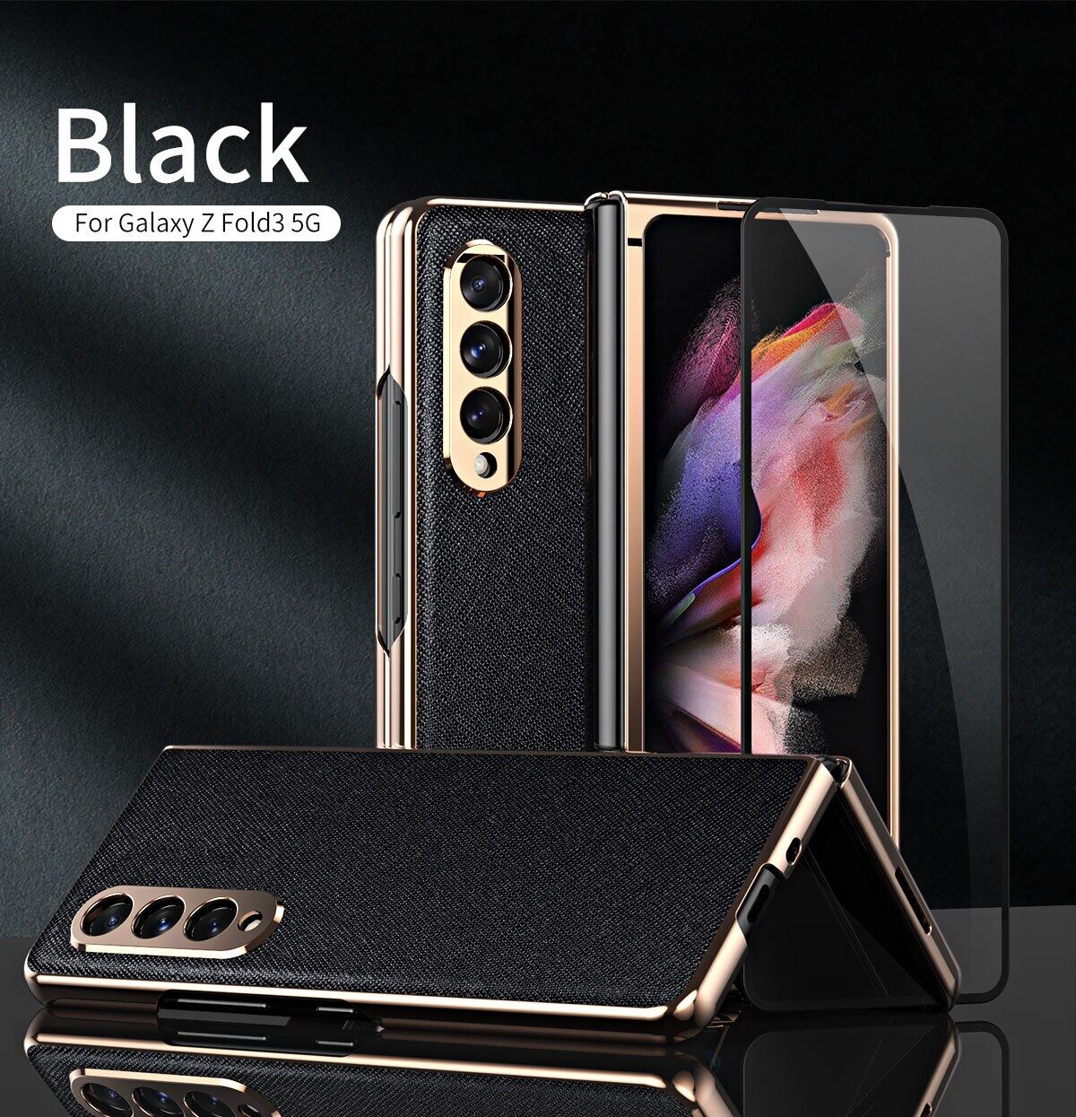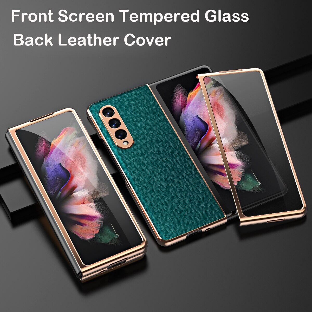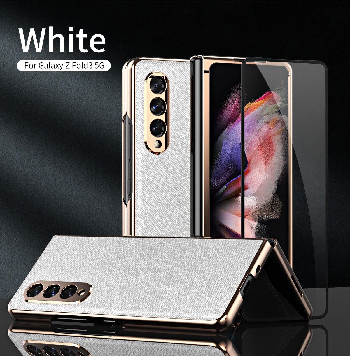 KISSCASE 360 Full Screen for Samsung Galaxy Z Fold 3 Protector Case PU Leather Shell Tempered Glass Cover