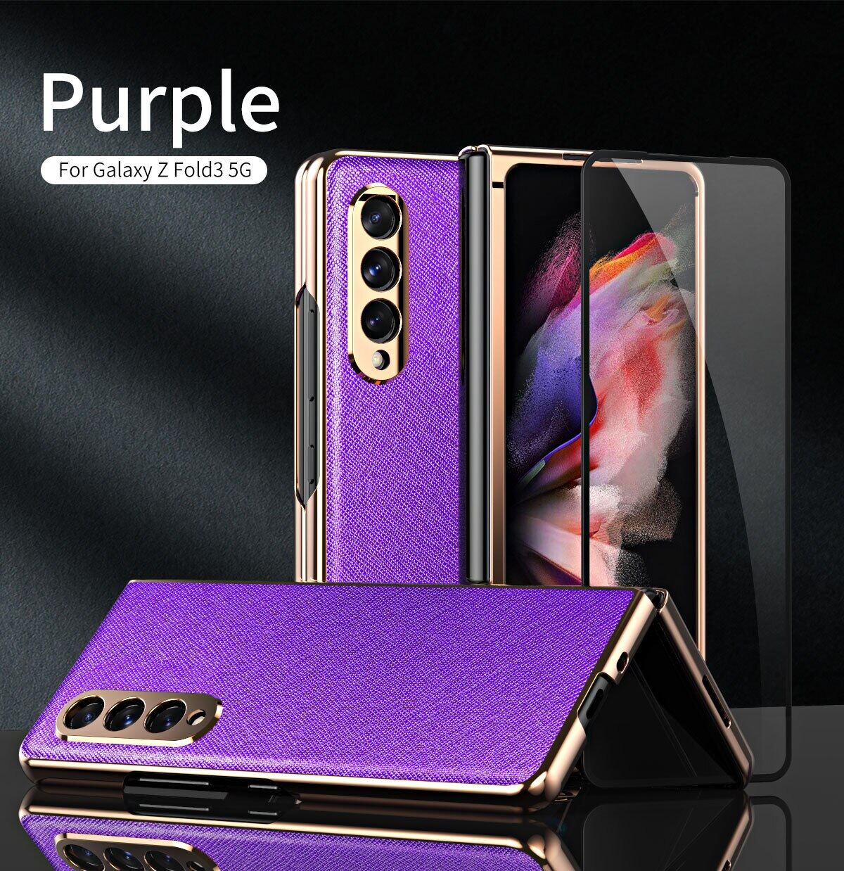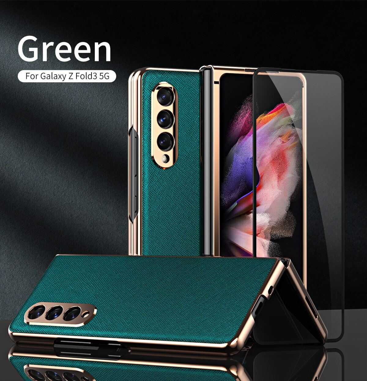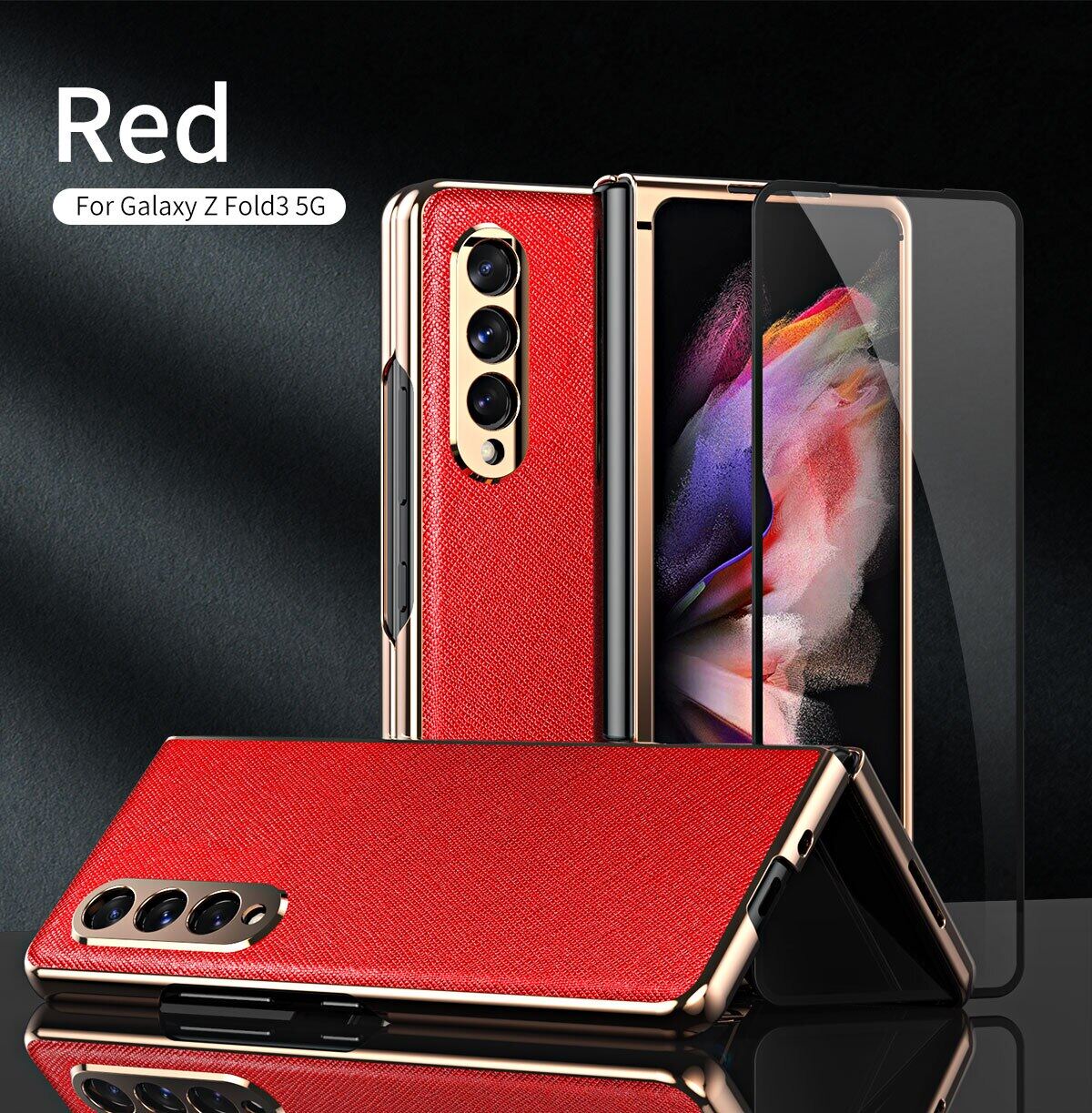 KISSCASE 360 Full Screen for Samsung Galaxy Z Fold 3 Protector Case PU Leather Shell Tempered Glass Cover