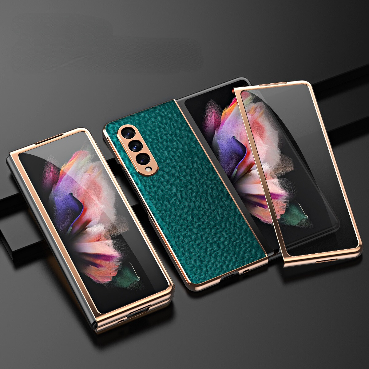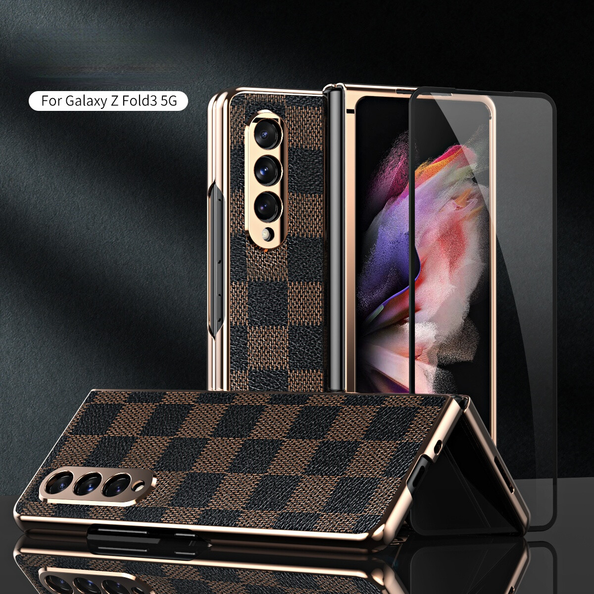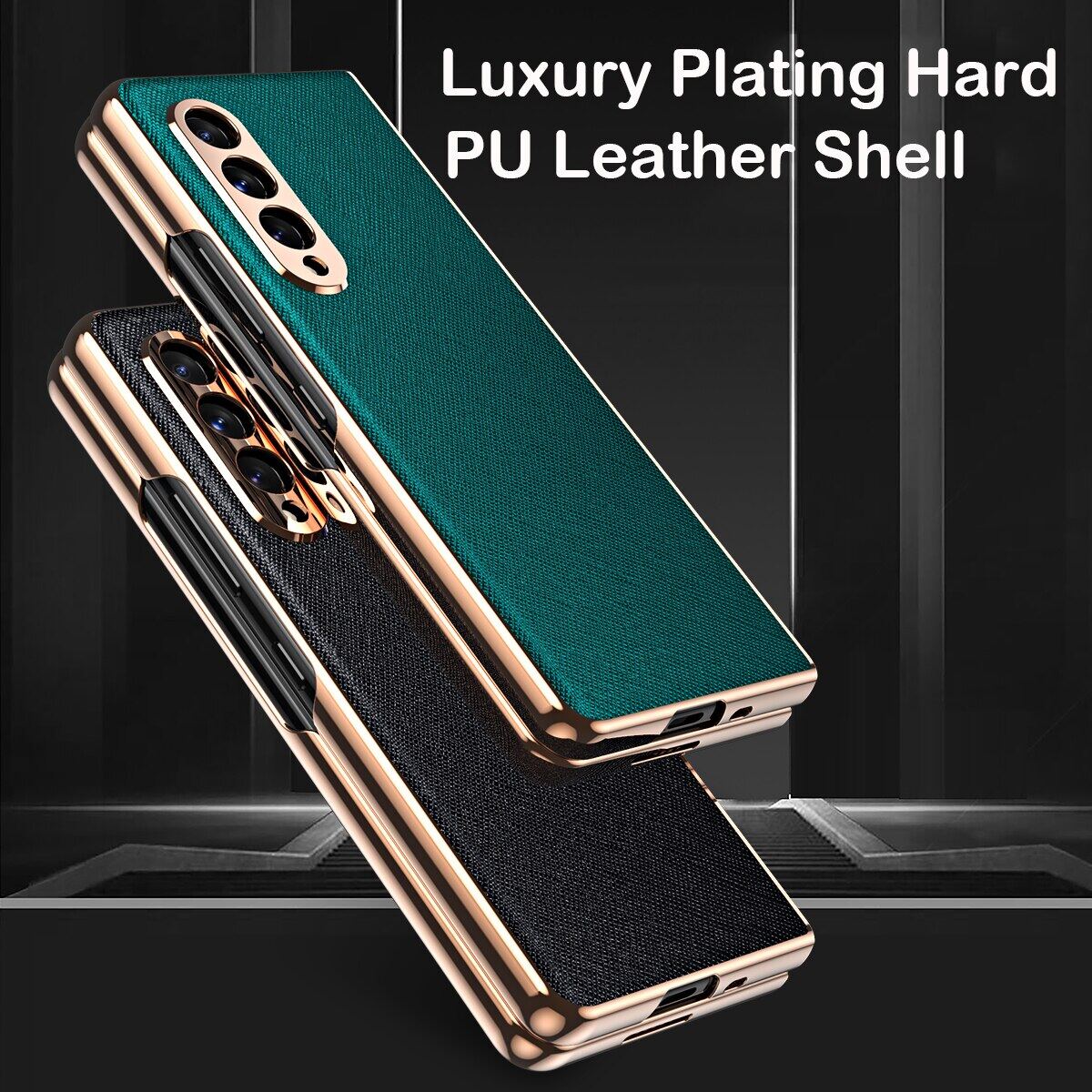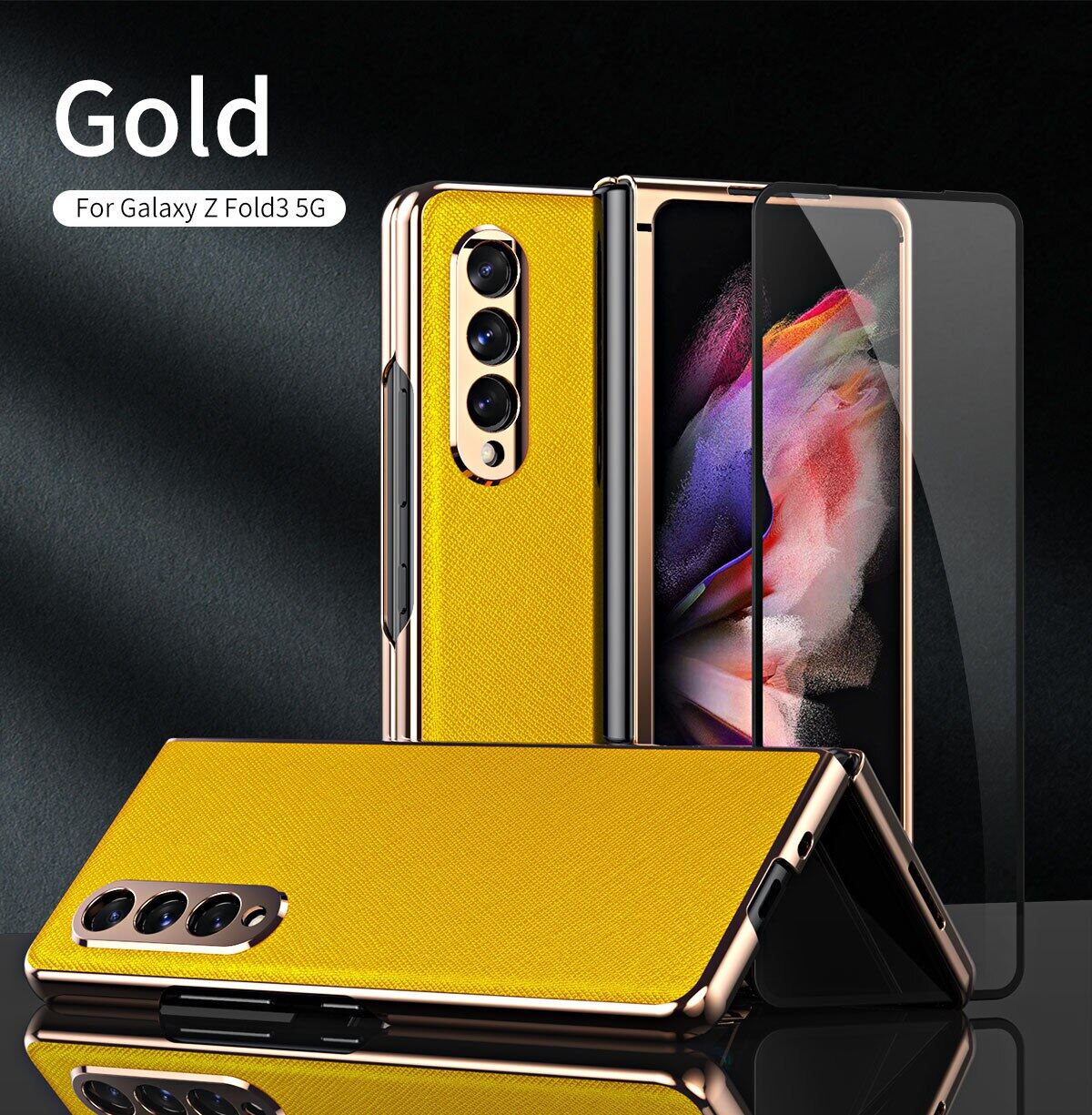 KISSCASE 360 Full Screen for Samsung Galaxy Z Fold 3 Protector Case PU Leather Shell Tempered Glass Cover