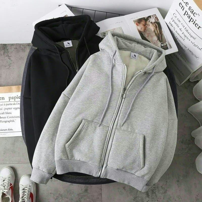 Internet Celebrity Cardigan Sweater Men's Hooded Autumn and Winter Clothing Student Large Size Couple Lazy Loose Fleece Padded Warm Jacket