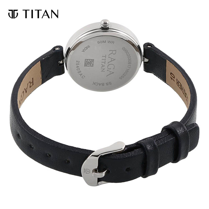 Titan Raga White Dial Black Leather Strap Women's Watch 2540SL01