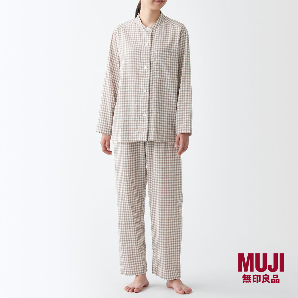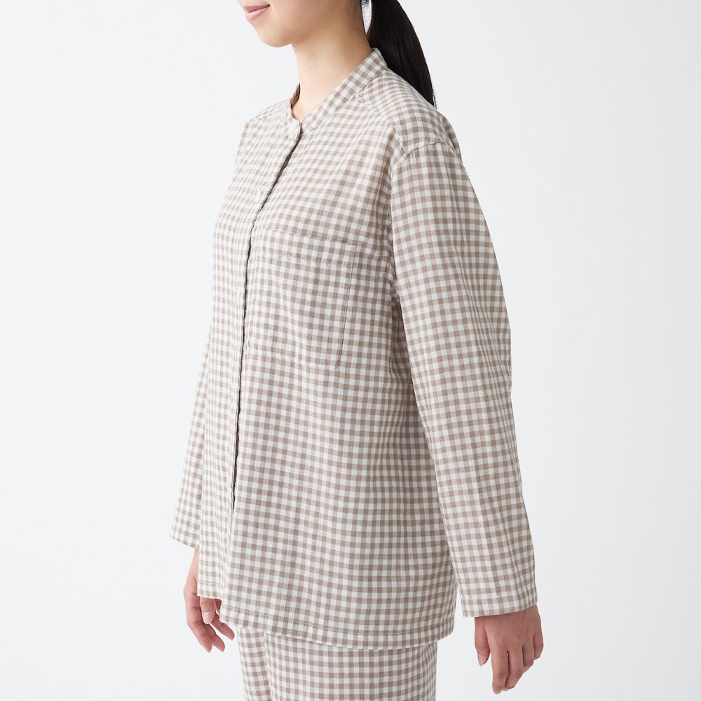 MUJI Ladies Side Seamless Double Gauze Stand Collar Pajamas