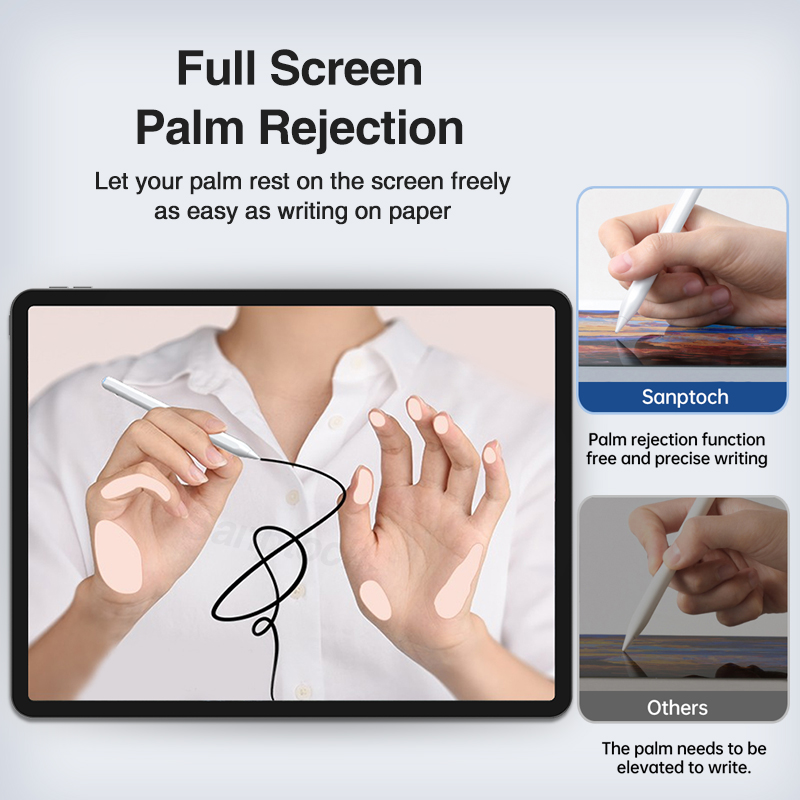 Sanptoch Wireless Charging iPad Pencil For Air 5th 4th Pro 11 12.9 2018-2022 With Palm Rejection & Tilt Sensing Stylus Pen For iPad Mini 6th Gen