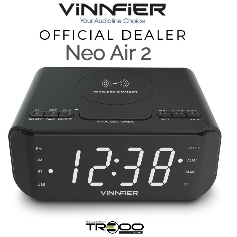 Vinnfier Neo Air 2 Wireless Bluetooth Desktop Bedside Speaker, Wireless Mobile Phone Charger, Alarm Clock with FM Radio