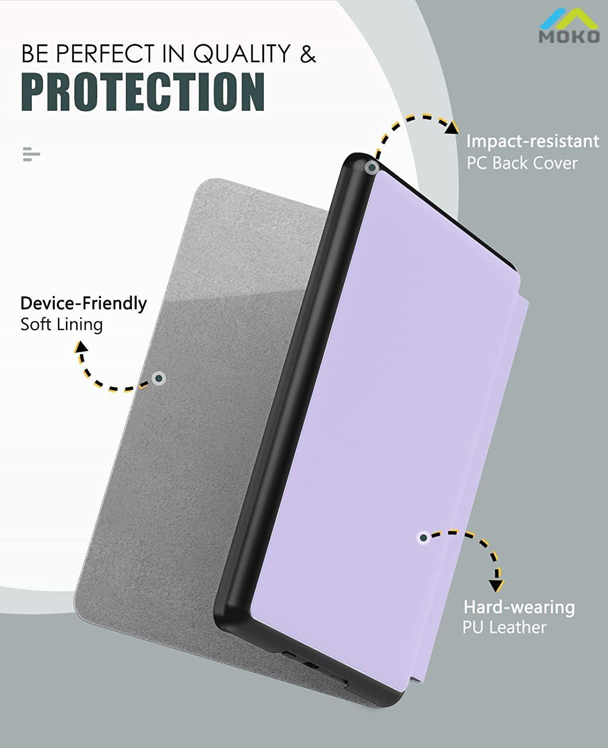 Product description: Slim lightweight hardback adds minimal bulk while protecting your Kindle Paperwhite 11. Automatically wakes or puts your device to sleep when the lid is opened and closed. The premium PU leather boosts a classy look. The no-scratch microfiber interior adds comfort and an additional layer of protection. Access to all controls and features. Device can be charged with case closed.