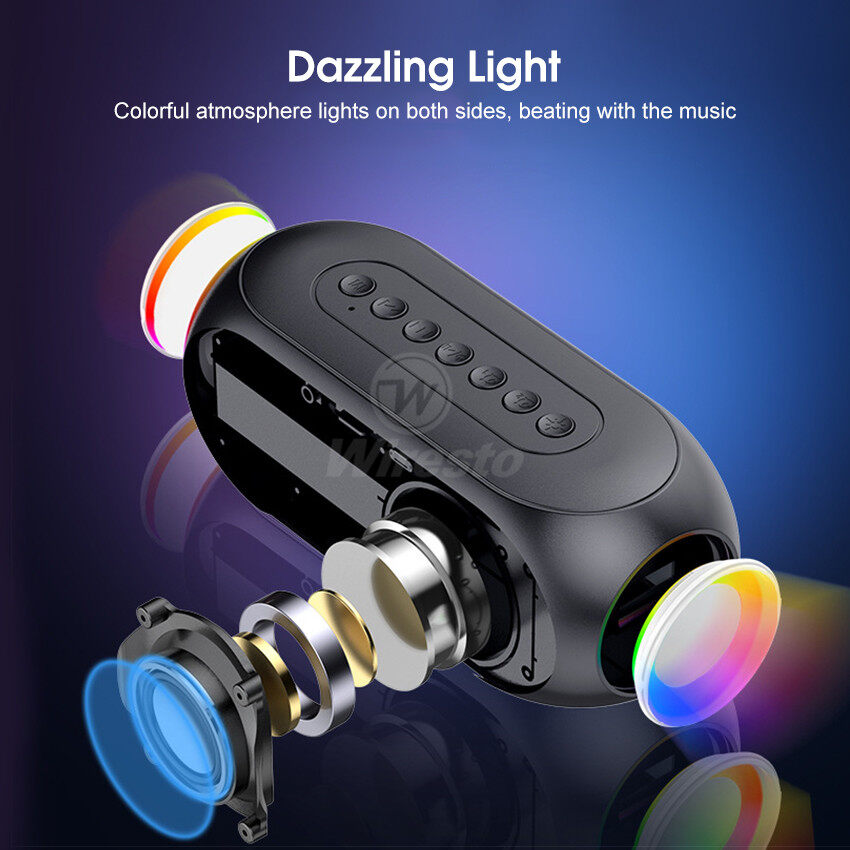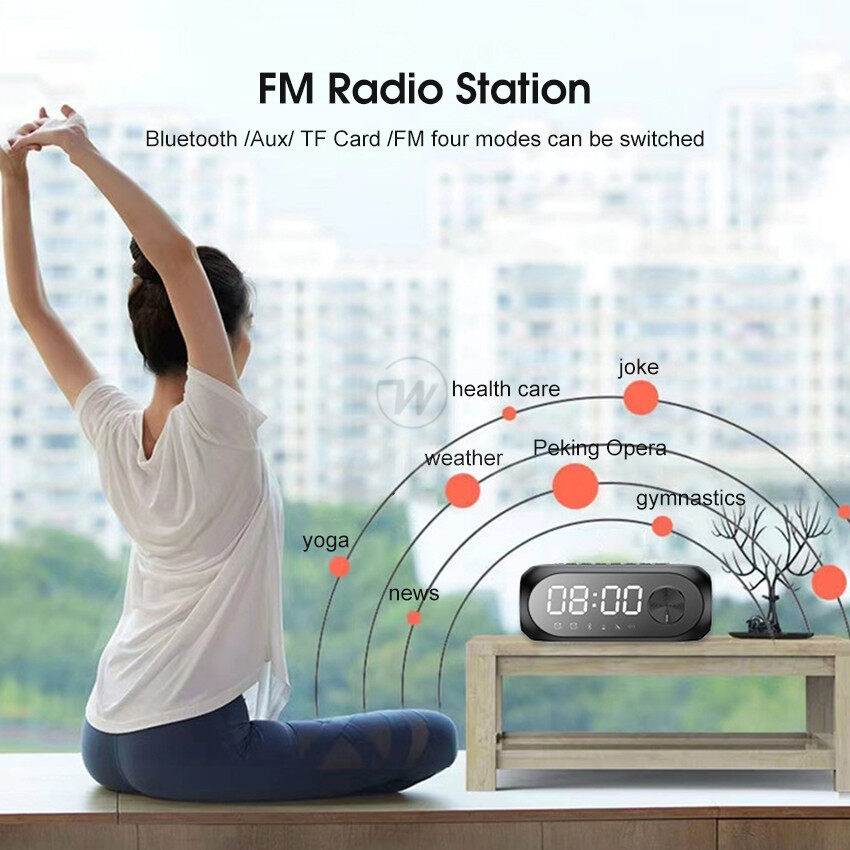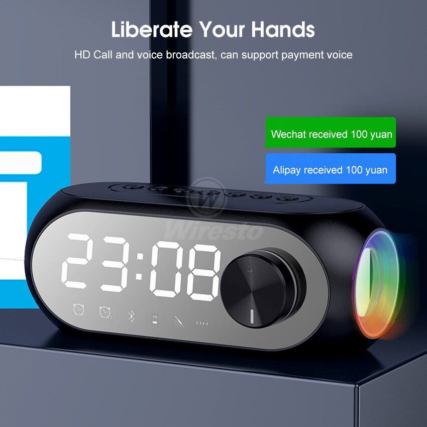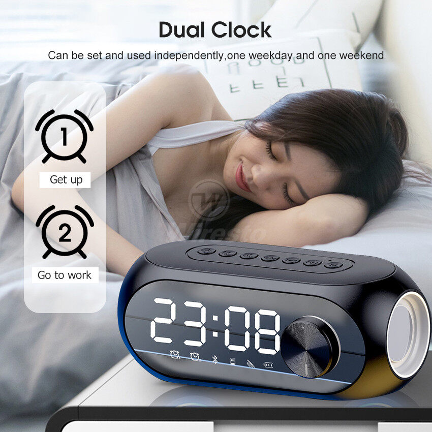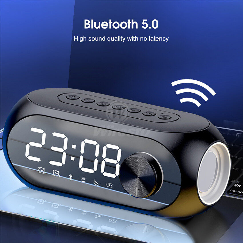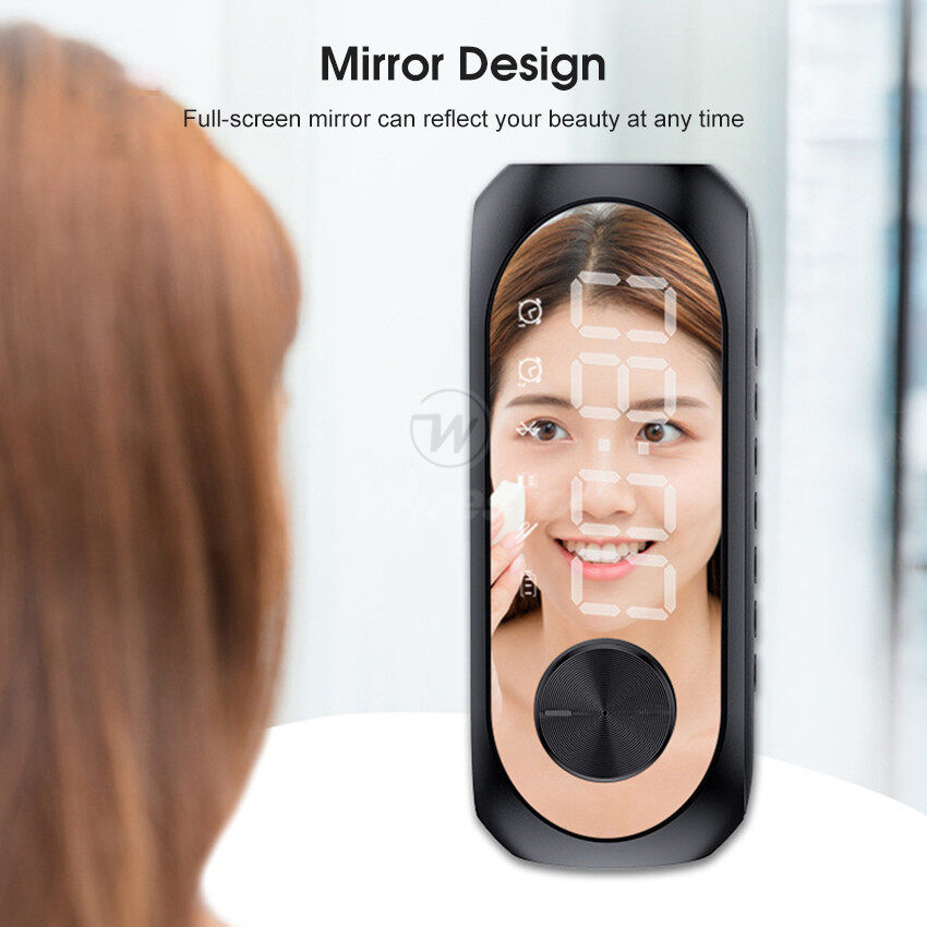 Wiresto Mirror Bluetooth Speaker Alarm Clock Bluetooth Speaker Digital Display Radio LED Wireless Subwoofer Music Player Table Clock Multifunction Bluetooth Speaker FM Radio TF Card AUX Bluetooth Comp