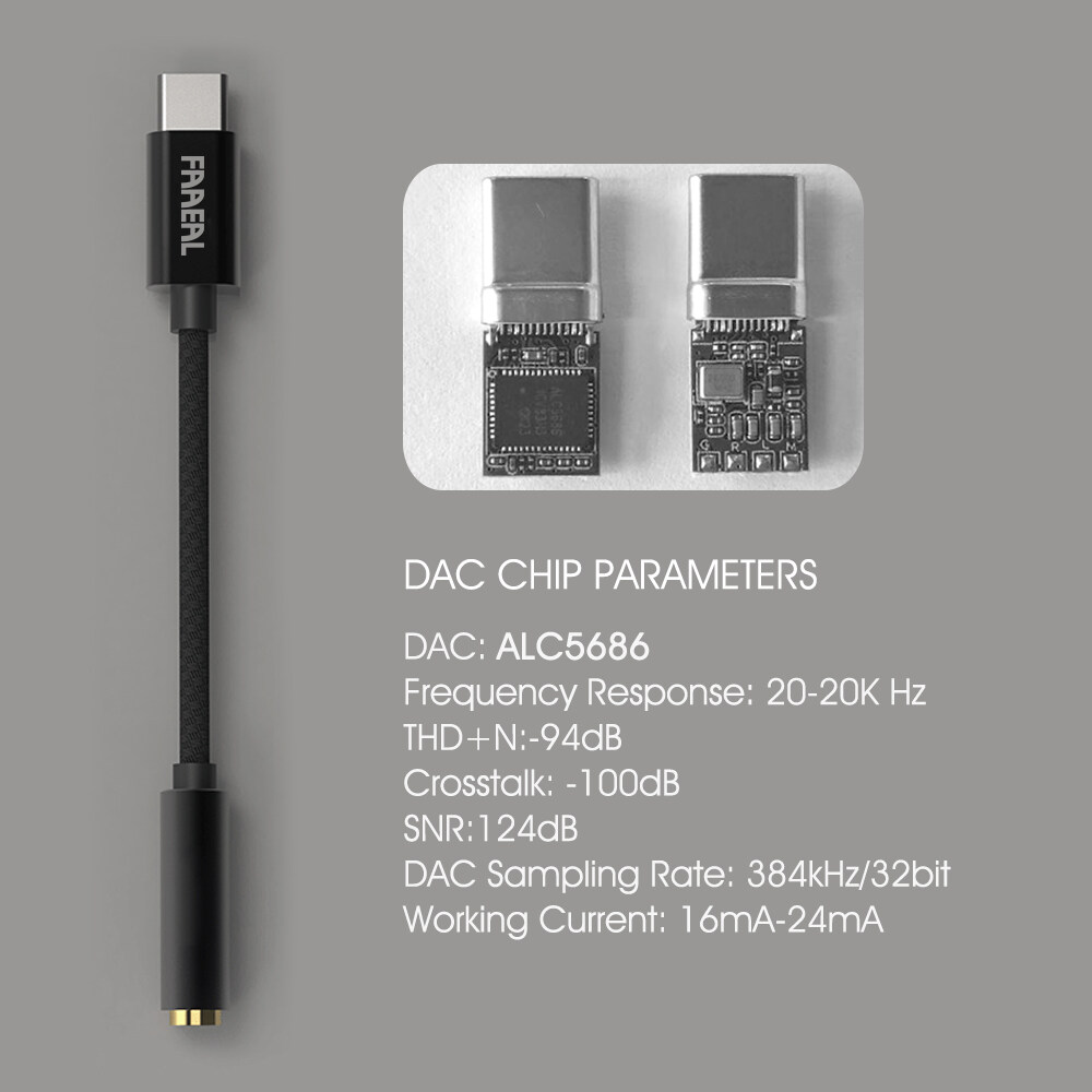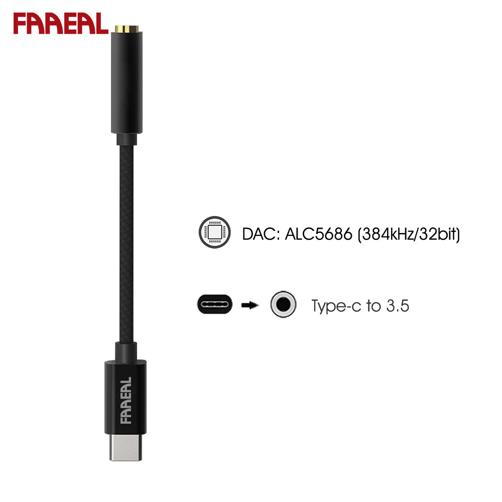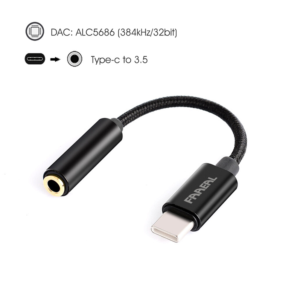 Faaeal Type-C To 3.5mm Audio Cable ALC5686 384kHz/32bit Headphone Amplifier USB DAC AMP Adapter 6N OCC Silver-plated Wire Decoding Headphone Converter Decoder For Win10 Android 4.0