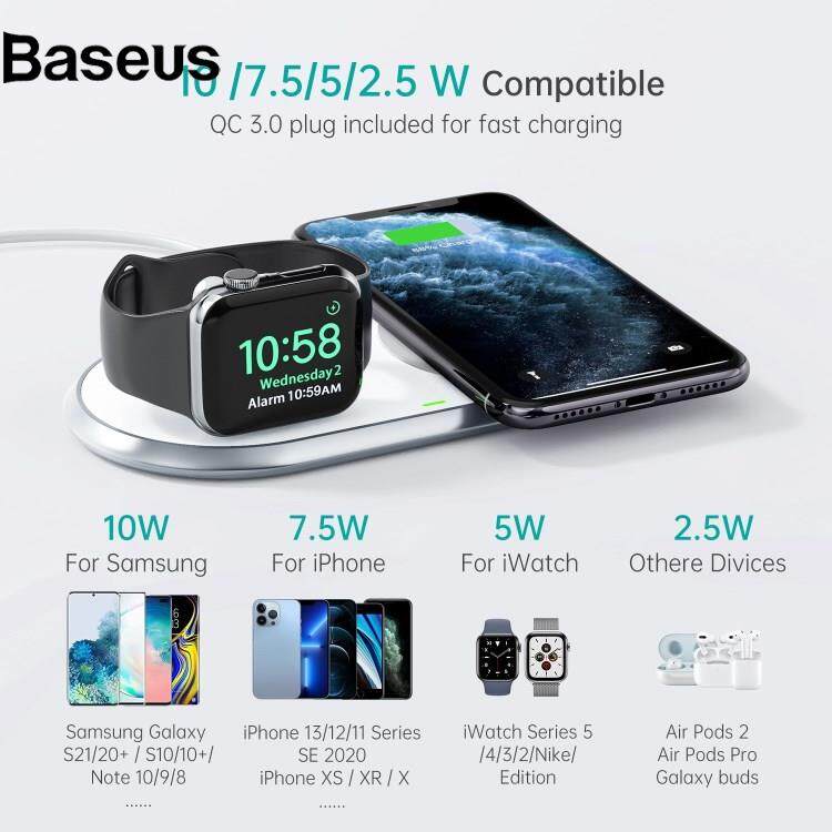Baseus CHOETECh MFI Certificated 15W 2-in-1 Phone Watch Earphone Wireless Charger Qi Wireless Charging Dock