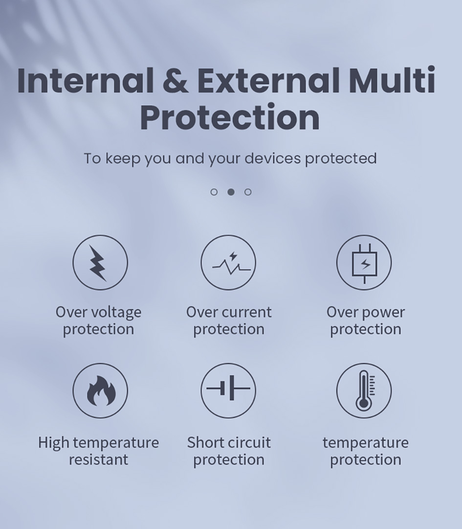 - Internal & External Multi Protection (Protection: Over voltage, current, power, temperature, High Temperature resistant, Short circuit protection)