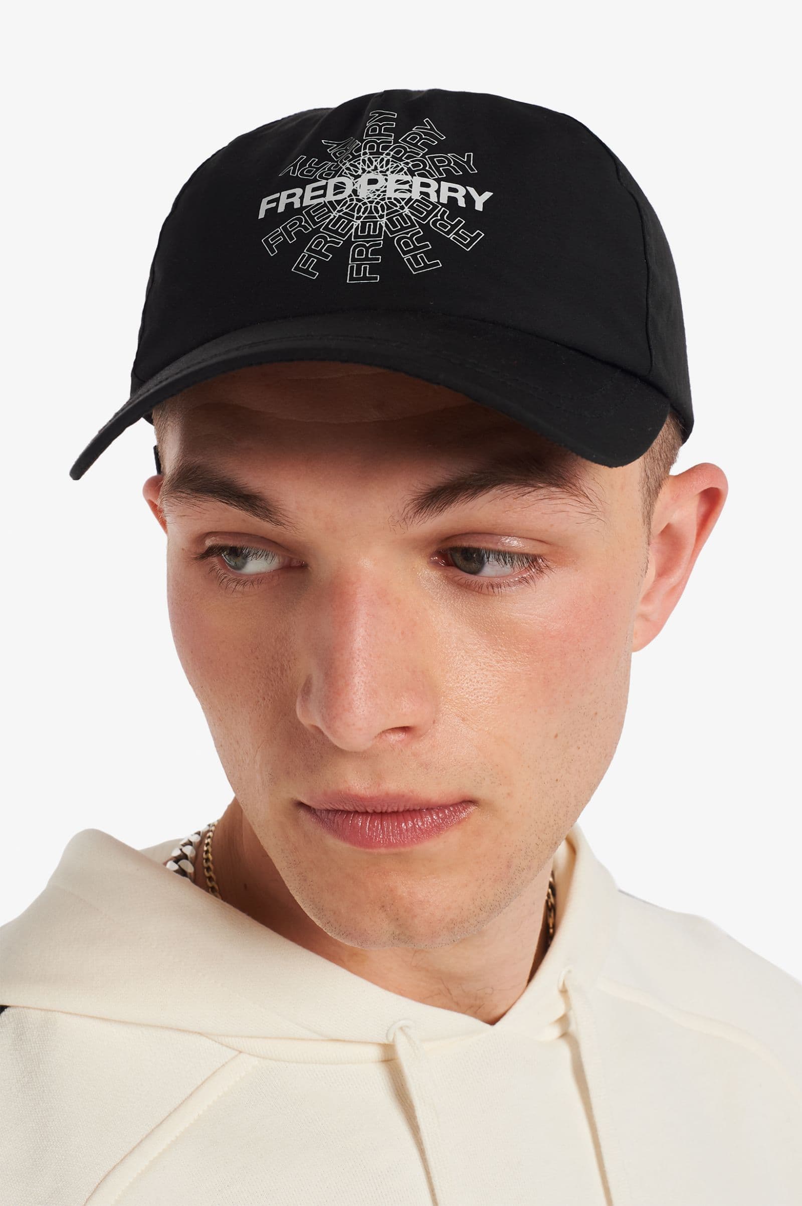 Bold branding and large-scale logos that hark back to the ‘90s, our classic cap in a polyester and cotton blend tricot fabric. Fred Perry through and through.