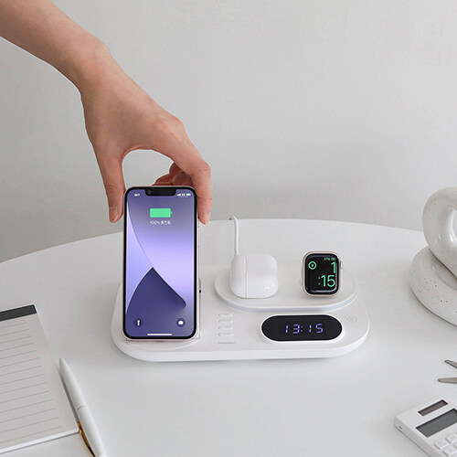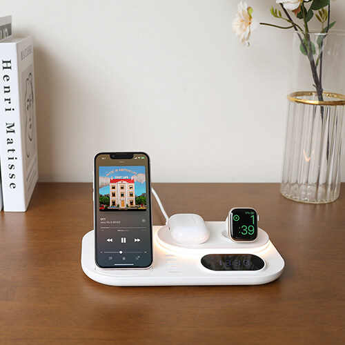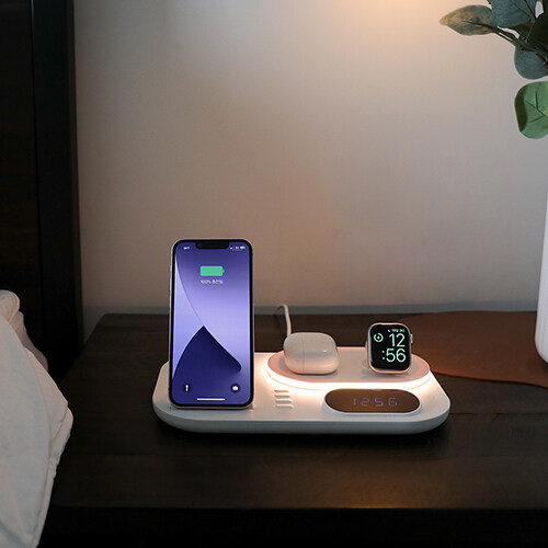 mooas All-Rounder 4 in 1 Fast Wireless Charging nightlight Clock, Wireless Charging Station with LED Clock, Compatible with iPhone 12, Galaxy S22, LG V50 and Newer, Airpods, Galaxy Buds, Apple Watch