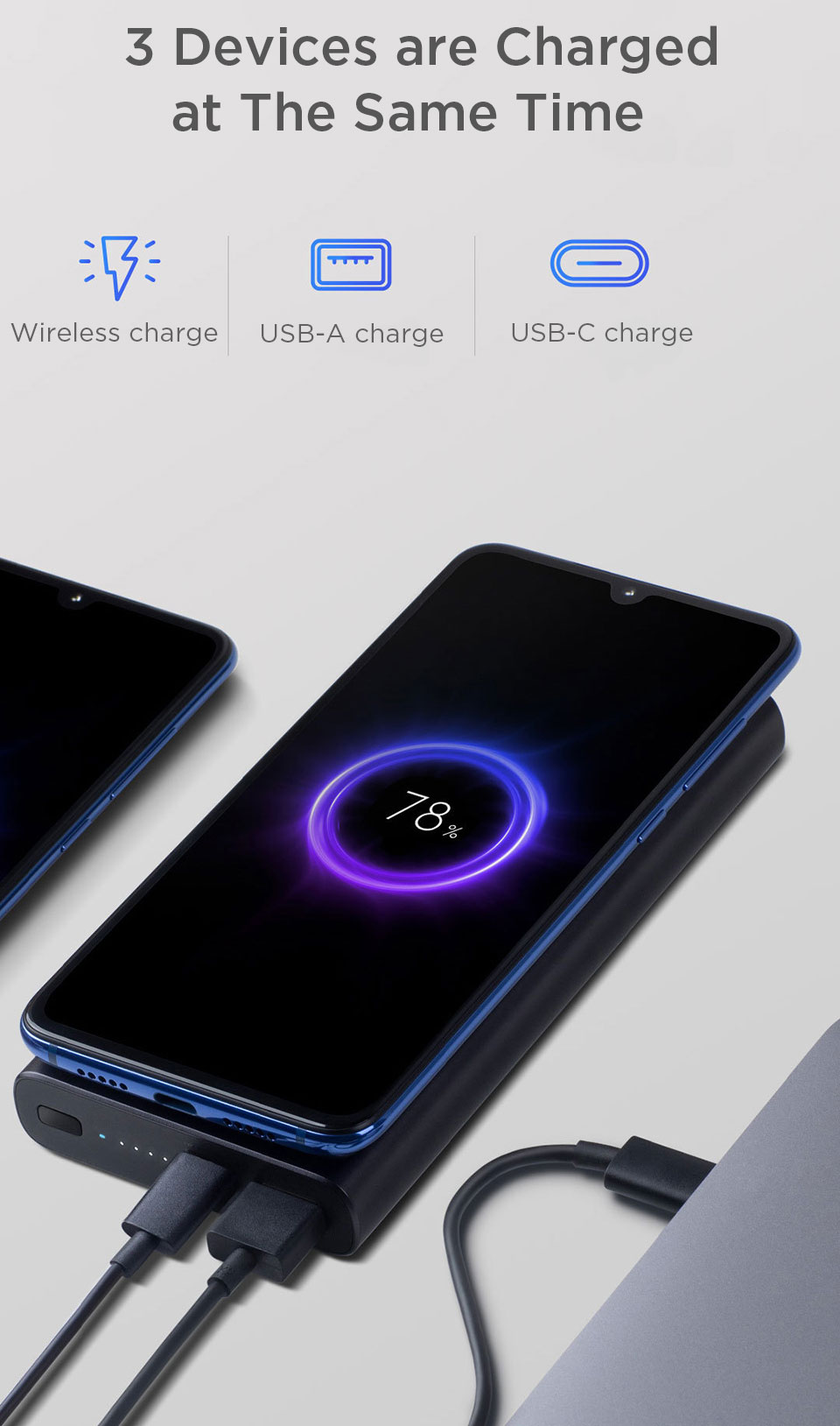 ✍ Simultaneous Charging: 3 Devices