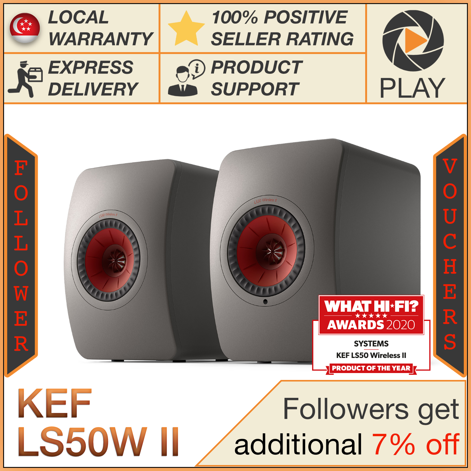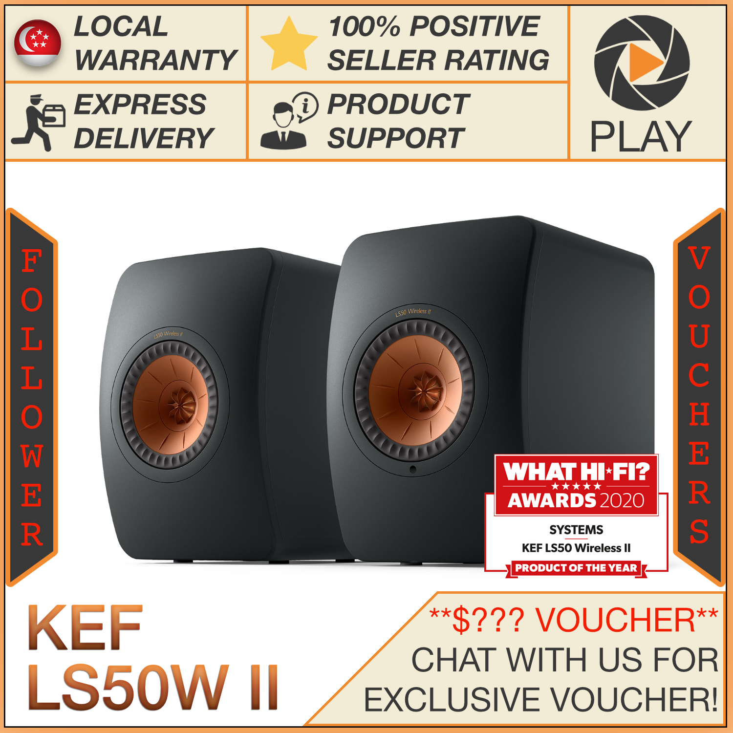 KEF LS50 Wireless II Active Bookshelf Speakers KEF LS50W II LS50W 2 (FOC installation)