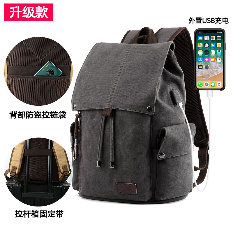 Korean Style Retro Canvas Men's Bag Casual Backpack Men's Travel Backpack Trendy Middle School Student Schoolbag Computer Bag Men