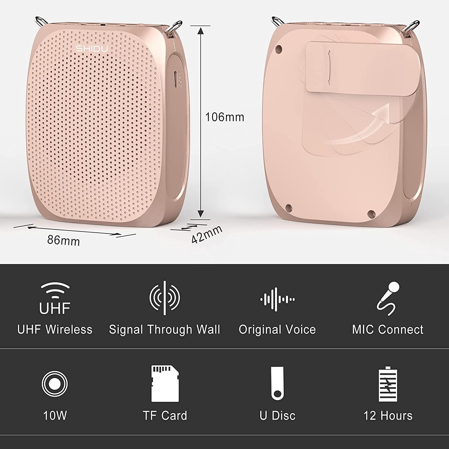 This SHIDU Waistband Voice Amplifier Saves Your Voice From Yelling Or Shouting Out, You Can Get Through The Day Without Suffering From Hoarseness Or A Sore Throat. It Is A Perfect Voice Aid To Anyone In Meetings, Seminars Or Guiding A Tour Etc. This Lightweight Hands Free Compact Voice Amplifier Design Is Durable And Elegant That Can Be Easily Worn At The Shoulder Or Waist Without Causing Any Discomfort.
