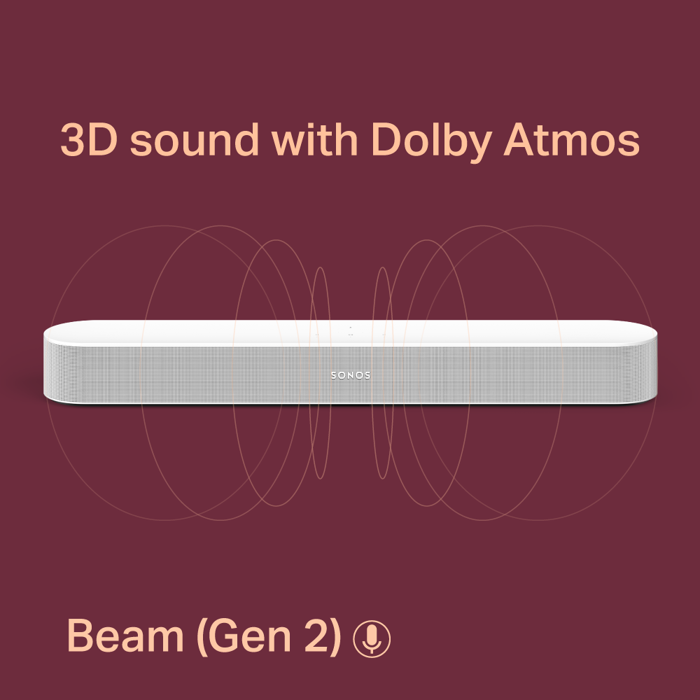 5.0 Sonos Beam (Gen 2) With Dolby Atmos Set with One SL - Wireless Home Theater System For TV