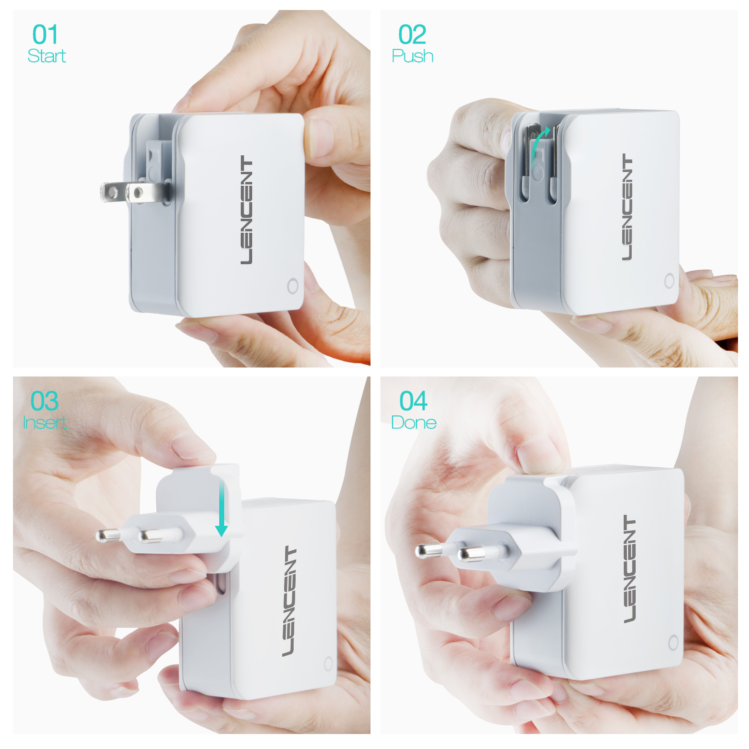 Lencent USB Charger Plug 4-Port USB Universal Travel Adaptor Plug 22W/5V 4.4A Wall Charger with Singapore/USA/EU/AUS Worldwide Travel Charger Adapter Multi Plug for iPhone iPad Android Tablets and Mor