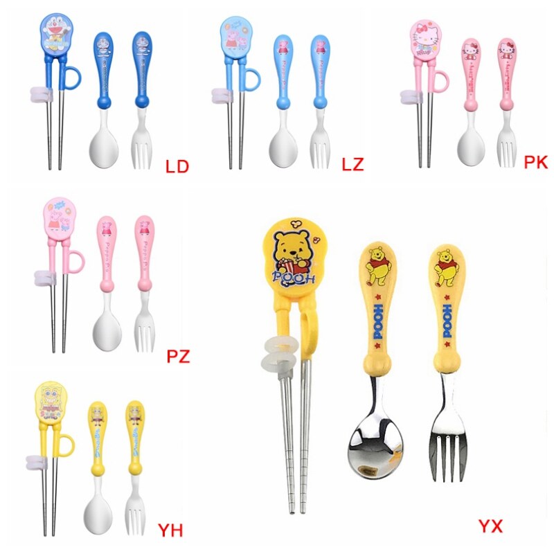 Baby Training Equipment Set Kids Learning Tableware, Stainless Steel Practice Chopsticks Fork Spoon Household Tableware