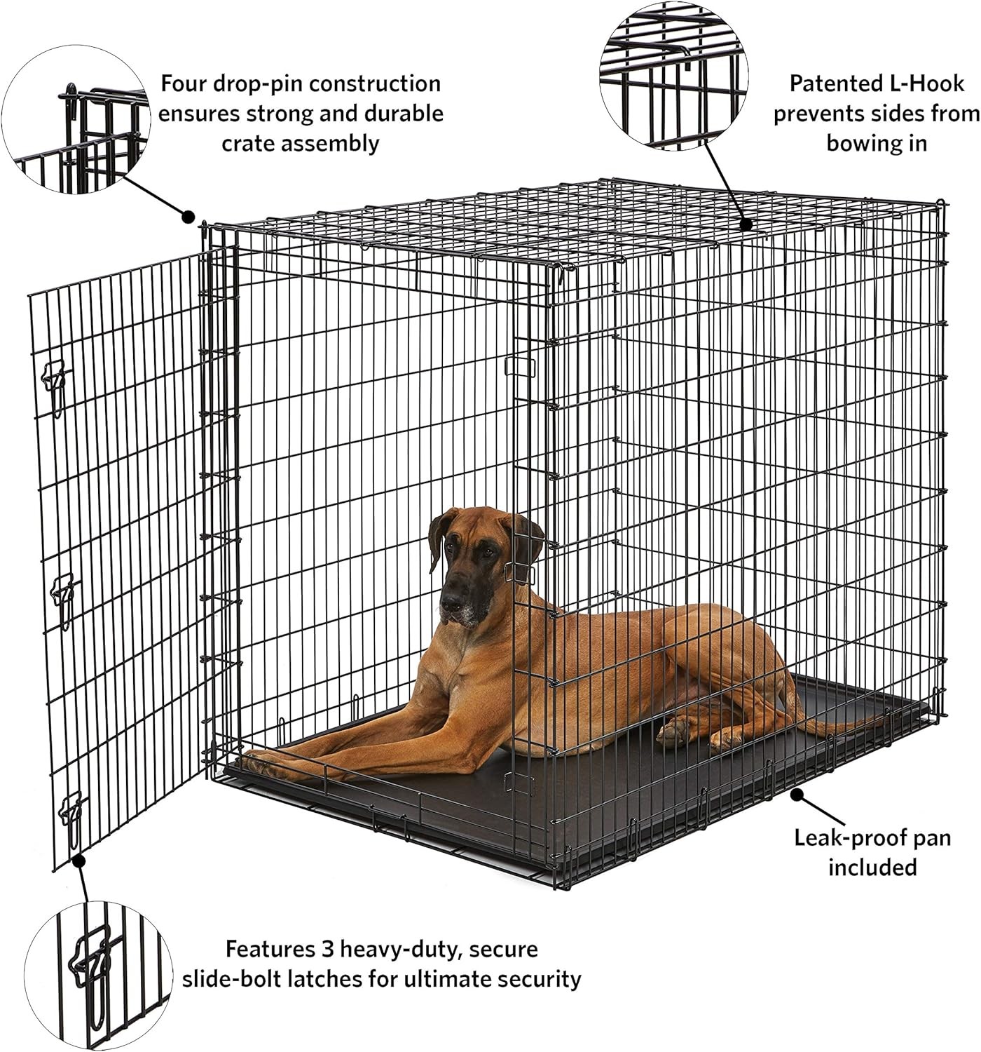 Midwest Homes for Pets Ginormous Single Door 54-Inch Dog Crate for XXL Dogs Breeds; Great Dane, Mastiff, St. Bernard, Drop Pin Assembly Requires Two People; Divider Panel Not Included; Black: SL54