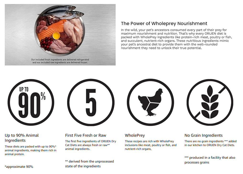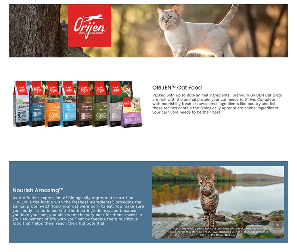 ORIJEN® Dry Cat Food, Grain Free, Premium, High Protein, Fresh & Raw Animal Ingredients, Six Fish, 12lb